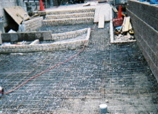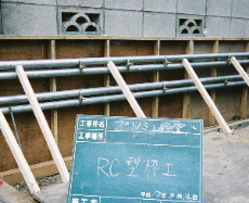 配筋をした後、コンパネで枠をして コンクリートを流し込んでいきます。 |