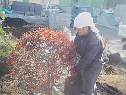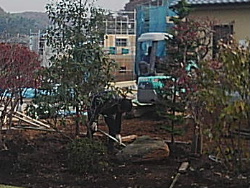 造園工事は親方自らが細かく指示。 お客様と打ち合わせをしながら 植木の配置を決めていきます。 |