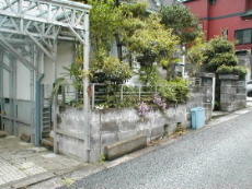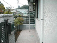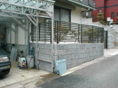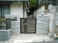 化粧ブロックでつくった門柱とアルミ製の門扉