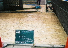 今回はコンクリートを均した直後に専用の着色剤を撒き 石型のスタンプを押していきました。 最近とても人気のある施工法で、大変綺麗に仕上がります。 |