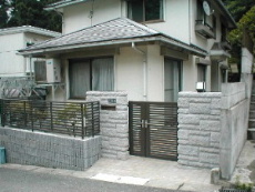 化粧ブロックでつくった門柱とアルミ製の門扉